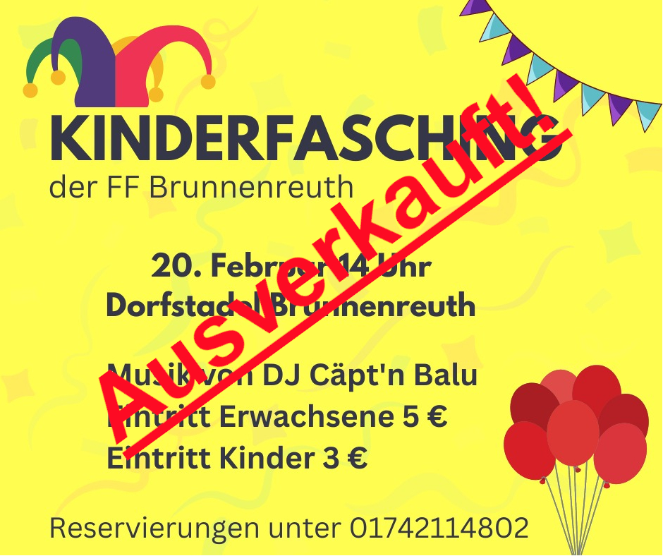 Kinderfasching der FF Brunnenreuth – Ausverkauft!