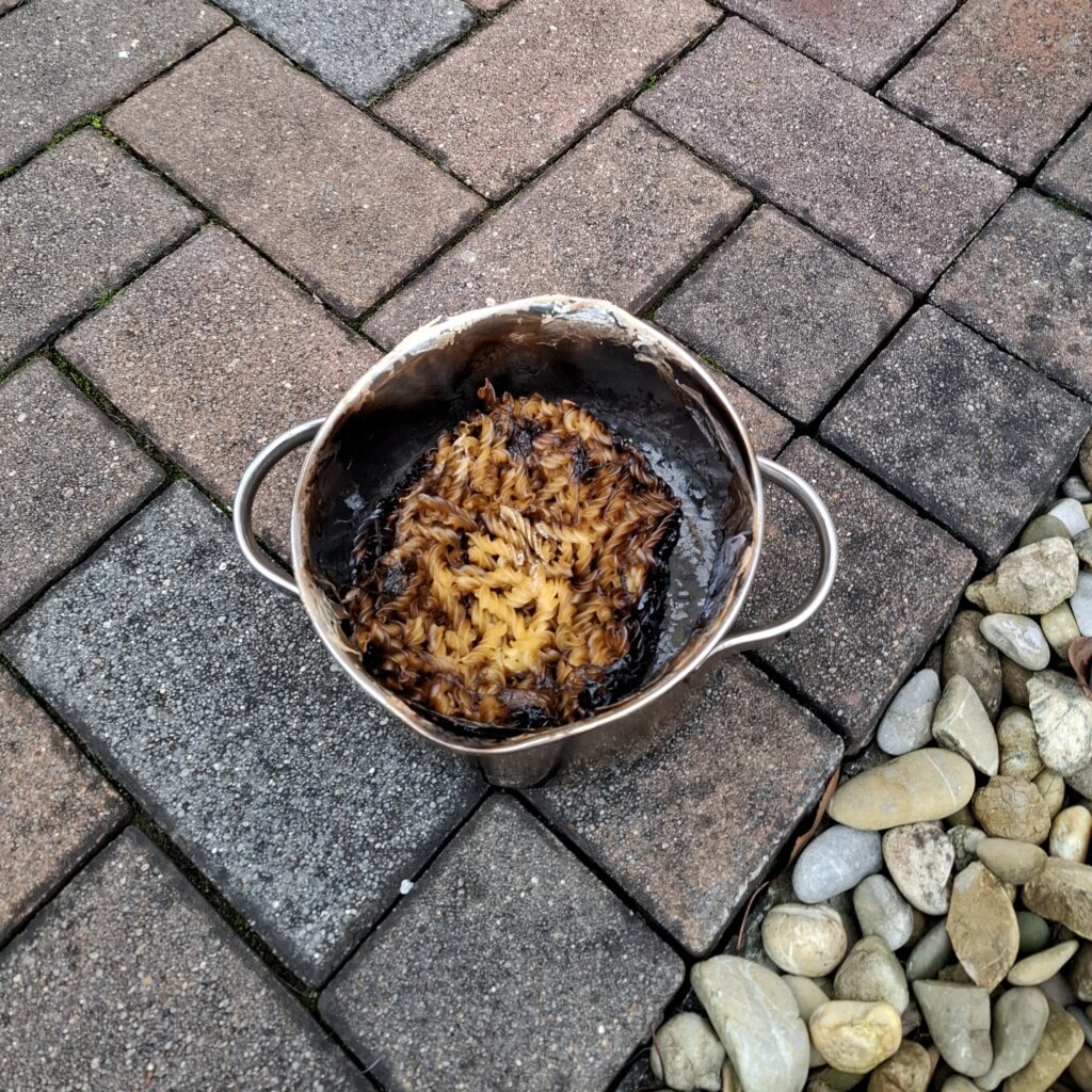 Ein Trupp unter Atemschutz führte die Nachlöscharbeiten mit einem Kleinlöschgerät durch. Anschließend kontrollierten wir die Küche mit der Wärmebildkamera und entrauchten die Wohnung mittels Überdrucklüfter.