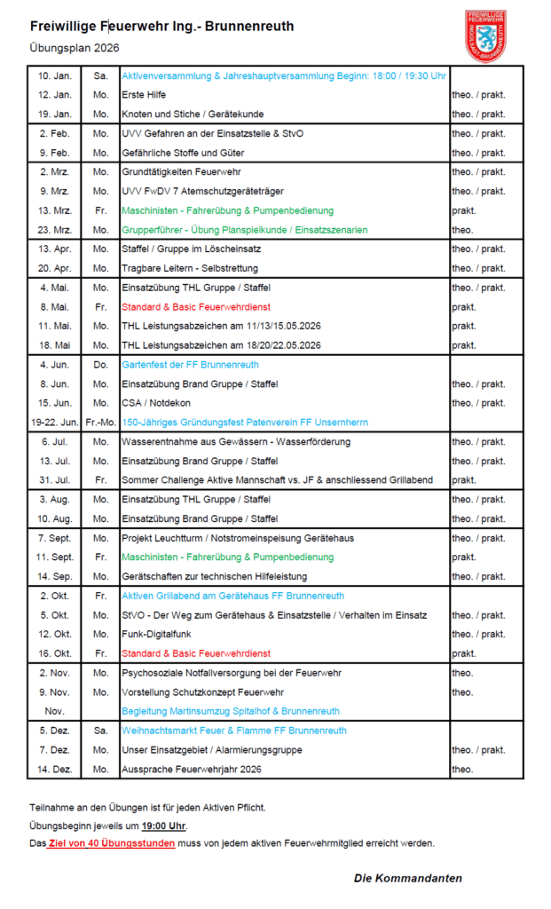 Übungplan Jugendfeuerwehr